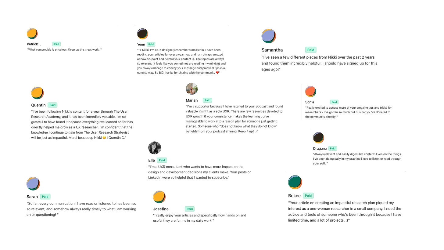 My business philosophy is that if you, as a customer, are not happy, then I’m not happy. I have a 30-day, no-questions-asked refund policy. Please email nikki@userresearchacademy.com for a full refund. I appreciate it if you can share the reason you were unhappy with the contents or purchase, but doing so is not necessary for a refund.