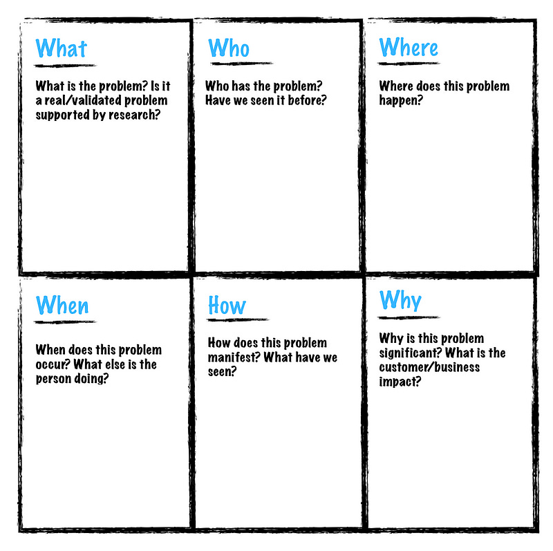 You don’t have to use the exact formula (I deviated above), but it is an excellent framework to keep in mind. Try to avoid proposing solutions during this phase, as it is an easy trap to fall into. Keep your focus on the problem and facts.