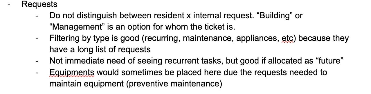 I took all of the interviews and used affinity diagrams to understand the bigger patterns and trends of what I needed to improve moving forward with my research reports. Unfortunately, I didn’t take screenshots with me so I lost all the diagrams, but I do remember (since I still use these principles!) what the overarching trends were.