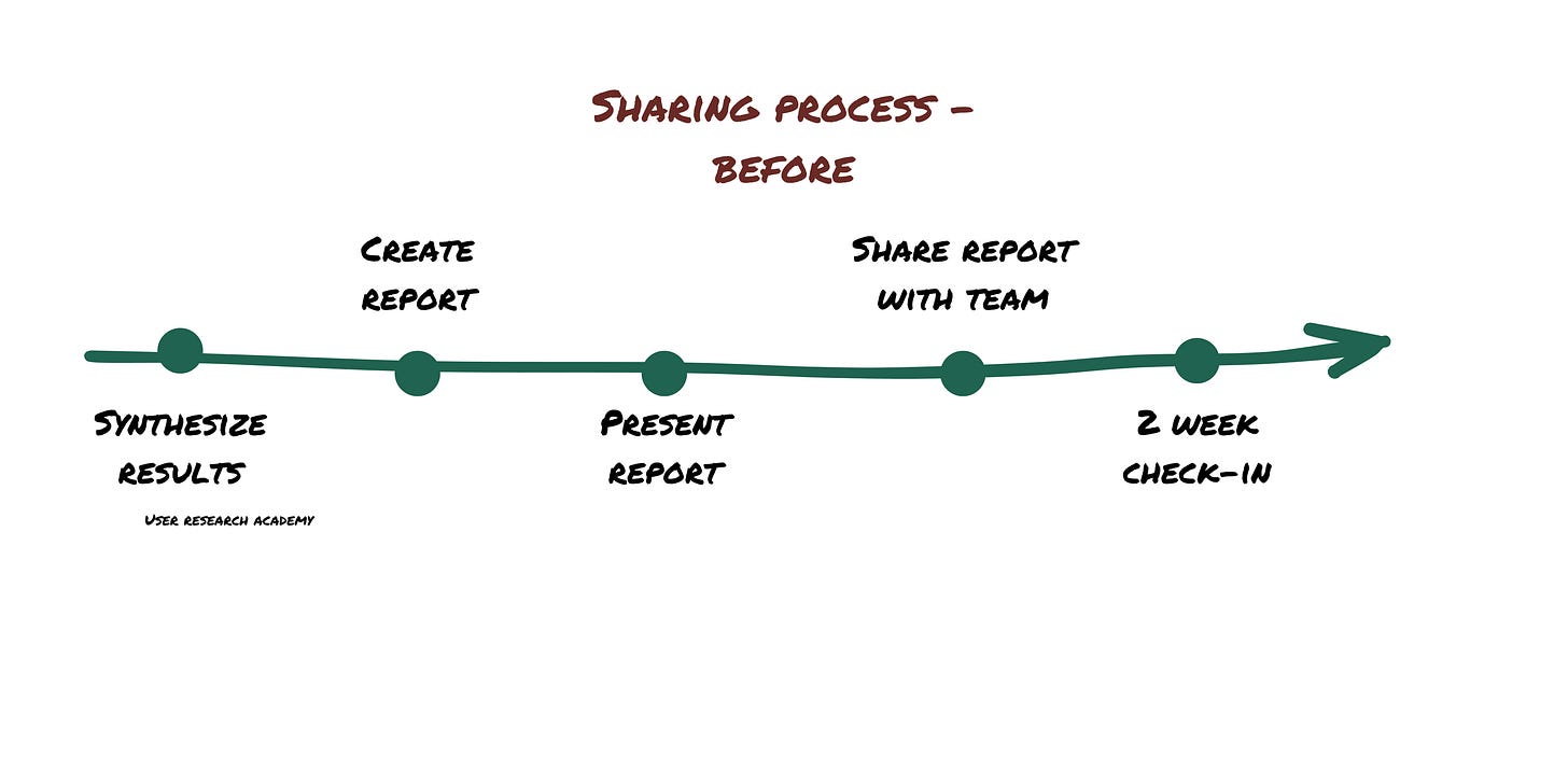 Asking teams about the types of deliverables they need. Because teams mentioned reports sometimes felt unnecessary, I started asking upfront what my teams needed from me regarding deliverables. If they were heavily involved in the research and synthesis, we often determined that a Miro board was enough and there was no reason to create a whole report. By asking my team, I reduced the amount of unneeded work and was able to speed up the sharing process considerably.