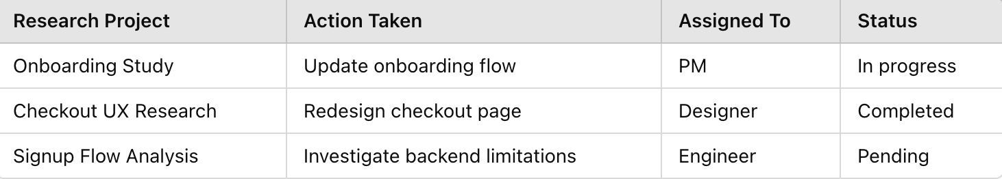 Even if stakeholders love the insights, research won’t drive impact unless someone is responsible for acting on it.