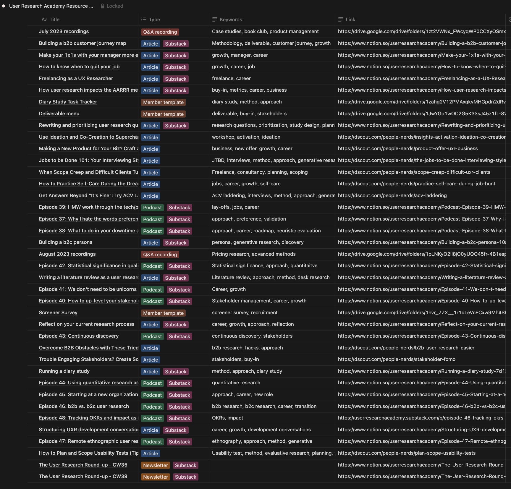 First things first, I’m super psyched to share with you the newest paid subscriber perk—access to a database filled with 350+ user research resources, all tagged and curated. If you haven’t had a chance to upgrade yet, this is a great opportunity to get in on the action and streamline.