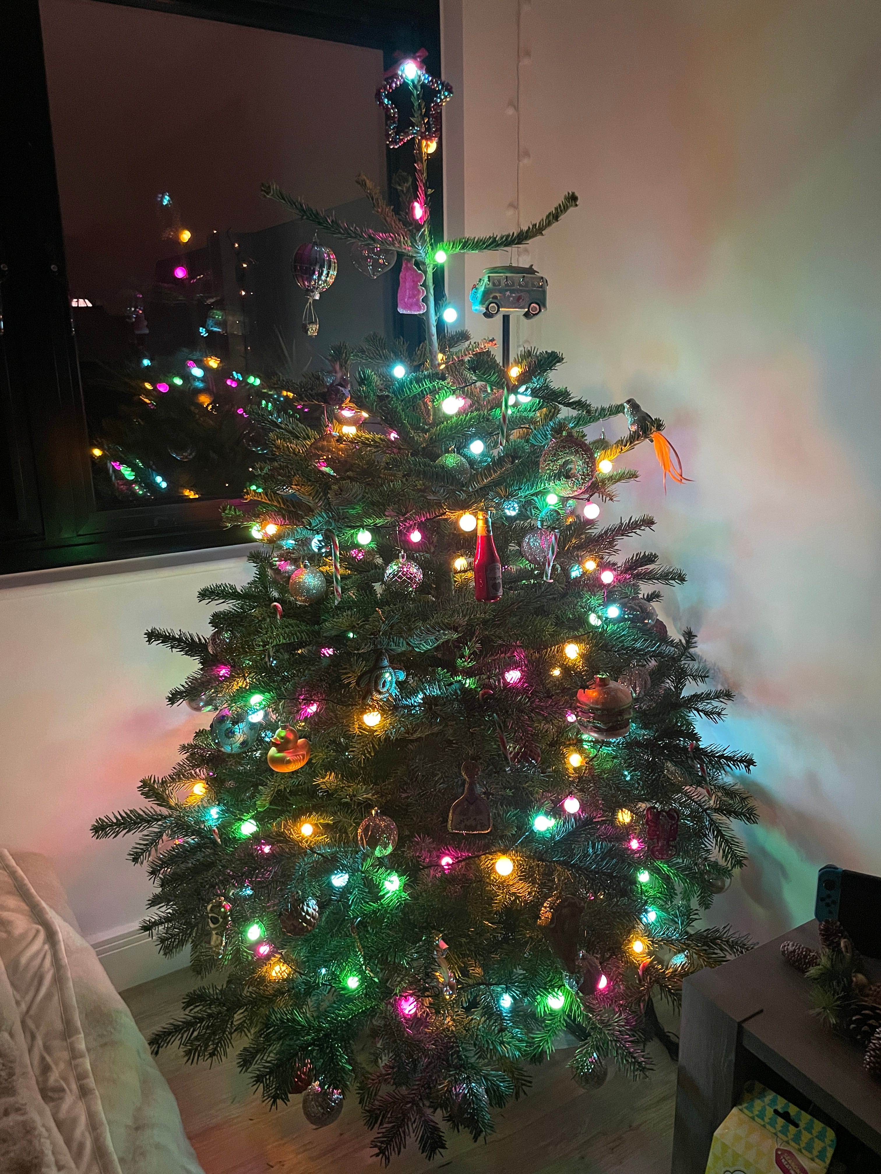 I got my Christmas tree up last weekend and started listening to Christmas music — as an American, I feel the need to wait until after Thanksgiving to do this, despite living in a place where no one really knows what Thanksgiving is, and I succeeded this year. Anyways, I’m thrilled with my tree as it features ornaments (or baubles as they say in Jersey) like a pizza, lobster, burger, ketchup, a camper van with surf boards, a duck, and various other fun things I love. Now it’ll be Rockin’ Around the Christmas Tree on repeat.