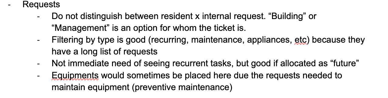 âFiltering by type is good (recurring, maintenance, appliances, etc) because they have a long list of requests.â